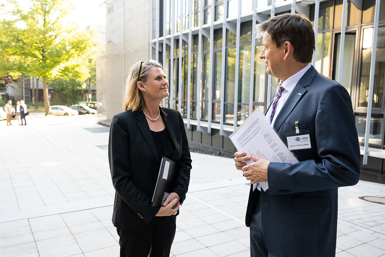 DKRZ-Geschäftsführer Prof. Thomas Ludwig begrüßt BMBF-Staatssekretärin Judith Pirscher