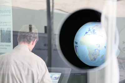 Die Hamburger Klimawissenschaften stellen sich vor: Eines der Highlights des Gemeinschaftsstandes von KlimaCampus, dem MPI für Meteorologie, dem Climate Service Center und dem DKRZ im Rahmen der Klimawoche 2011 war sicher unser Klimaglobus, auf dem verschiedene aktuelle Simulationsergebnisse und Beobachtungsdaten abgerufen werden konnten.