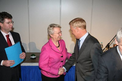 zwischen Bundesministerin Prof. Annette Schavan und Hamburgs Bürgermeister Ole von Beust